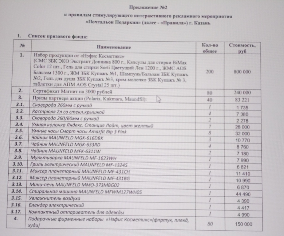 - Подарки от спонсора Нэфис Косметикс - 80 шт.;