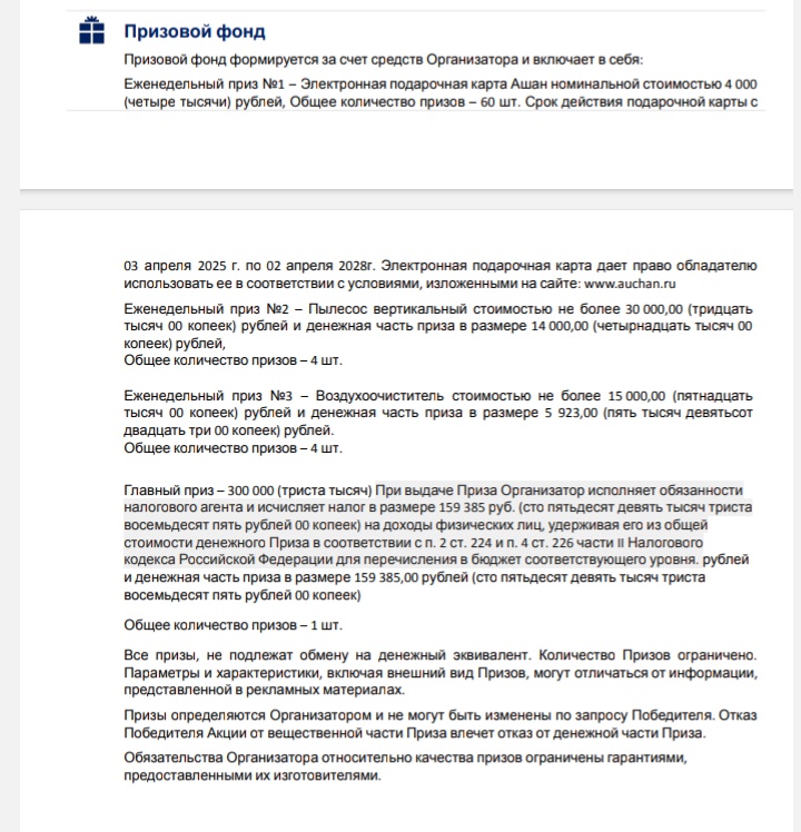 • Электронная подарочная карта Ашан номиналом 4000 руб. - 60 шт.;