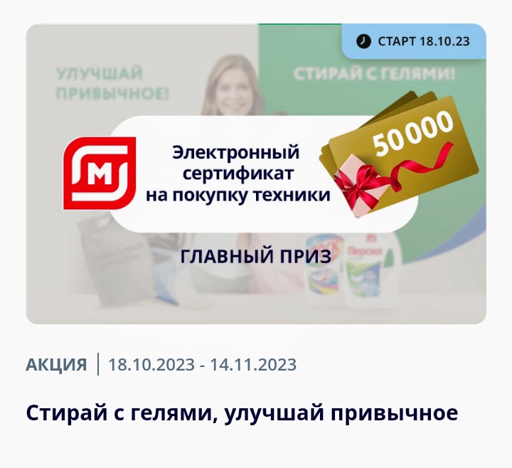 С 18 октября 2023 года участвуйте в акции от Персил и Лоск. Совершайте покупку гели для стирки Персил или Лоск в магазинах «Магнит», регистрируйте чек и участвуйте в розыгрыше призов. Стирай с гелями, улучшай привычное!