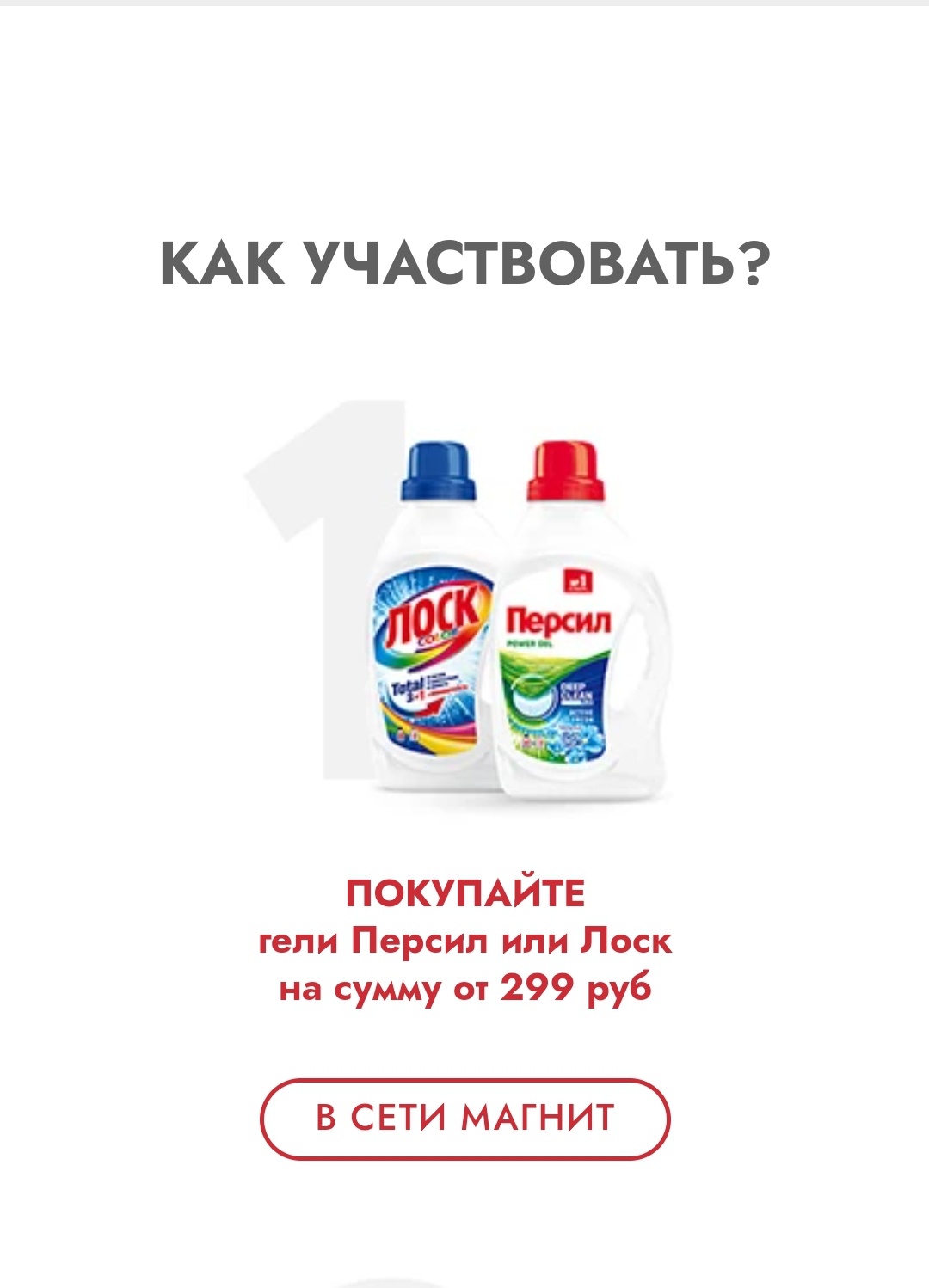 - Покупайте гели Персил или Лоск на сумму от 299 руб. в магазинах сети «Магнит» или в «Магнит Доставка»;