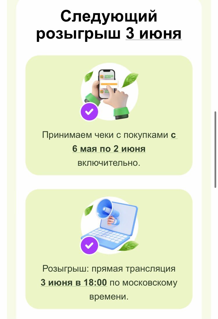 «Принимаем чеки с покупками с 6 мая по 2 июня включительно»
