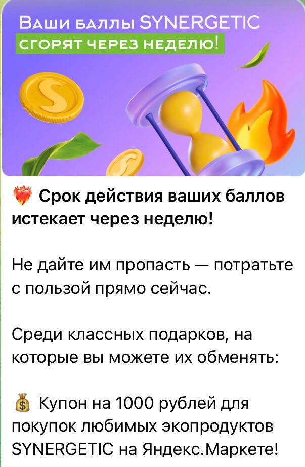 «Купон на 1000 рублей для покупок любимых экопродуктов SYNERGETIC на Яндекс.Маркете» … 🤔🎁❌