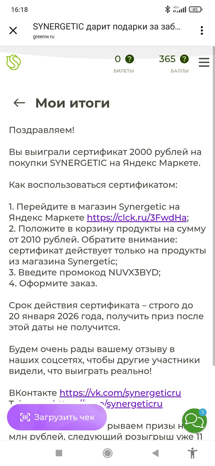Организатор акции: ООО “Синергетик”