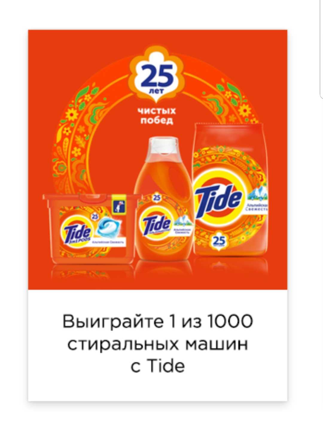 - Купи любое средство для стирки Tide с 01.02.2019 по 31.03.2019 и сохрани чеки;