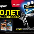 Акция Energizer: «20 лет получай каждый год 100 000 рублей»
