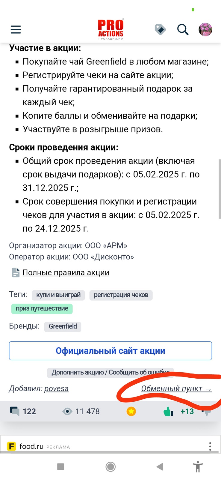 Организатор акции: ООО «АРМ»