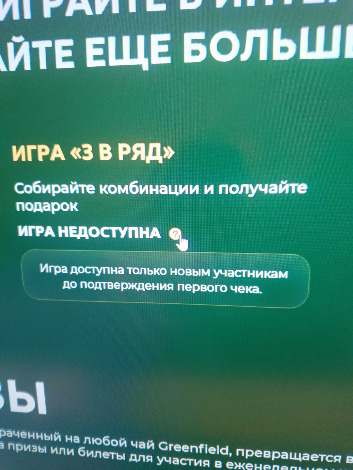 Покупайте чай Greenfield в любом магазине, регистрируйте чек на сайте акции, каждый рубль, потраченный на любой чай Greenfield, превращается в листочек. Обменивайте их на призы или билеты для участия в еженедельном и главном розыгрышах.