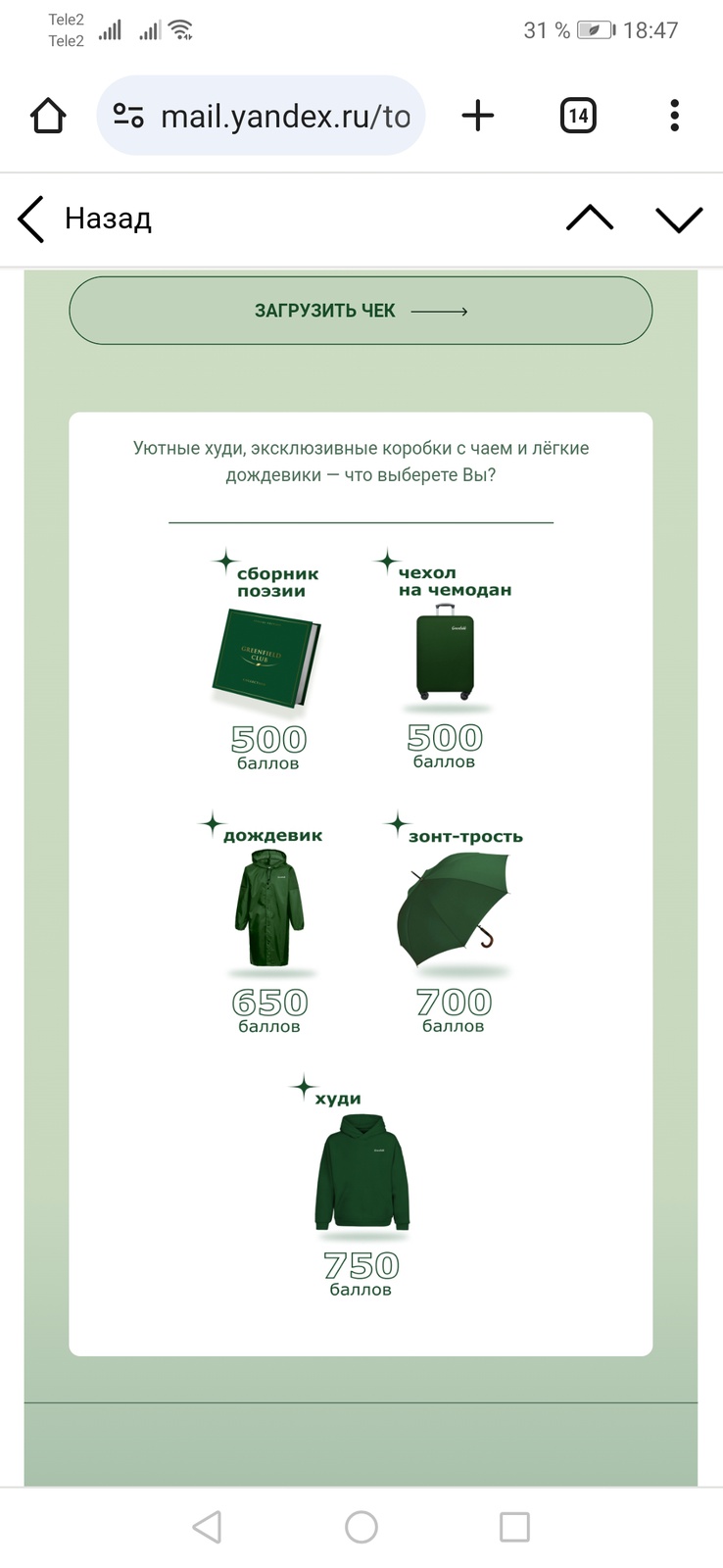 - Чай в фирменной коробке - 300 баллов (750 шт.);