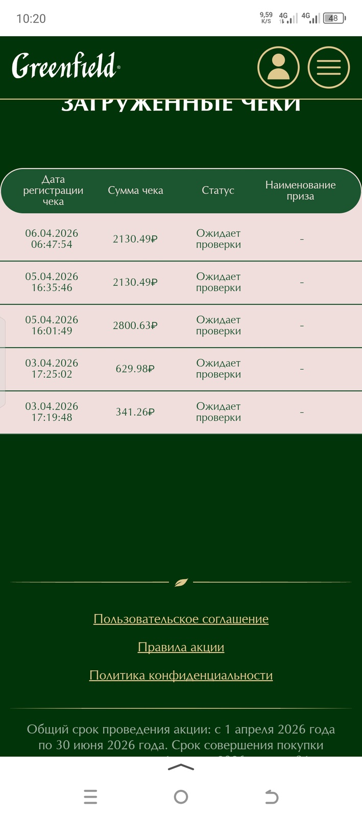 С 1 апреля 2026 года покупайте любой чай Greenfield в магазинах «Пятерочка», регистрируйте чек, получите гарантированный приз, участвуйте в розыгрыше 500 000 рублей и других призов.