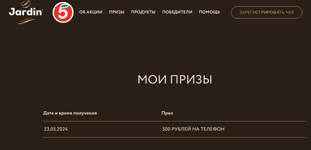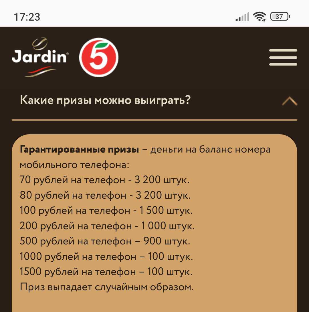 - Для участия в розыгрыше Специального приза 2 необходимо приобрести не менее одной единицы Jardin Americano Crema в магазинах сети «Пятёрочка», в том числе через сервис доставки;