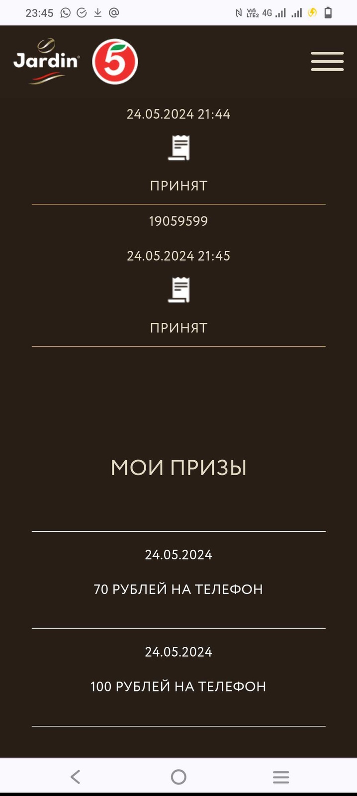 С 22 мая 2024 года участвуйте в акции от Jardin. Покупайте кофе Jardin в магазинах «Пятерочка», регистрируйте чек и участвуйте в розыгрыше призов. Купите кофе Jardin Americano Crema и участвуйте в розыгрыше специального приза - смартфон последнего поколения.