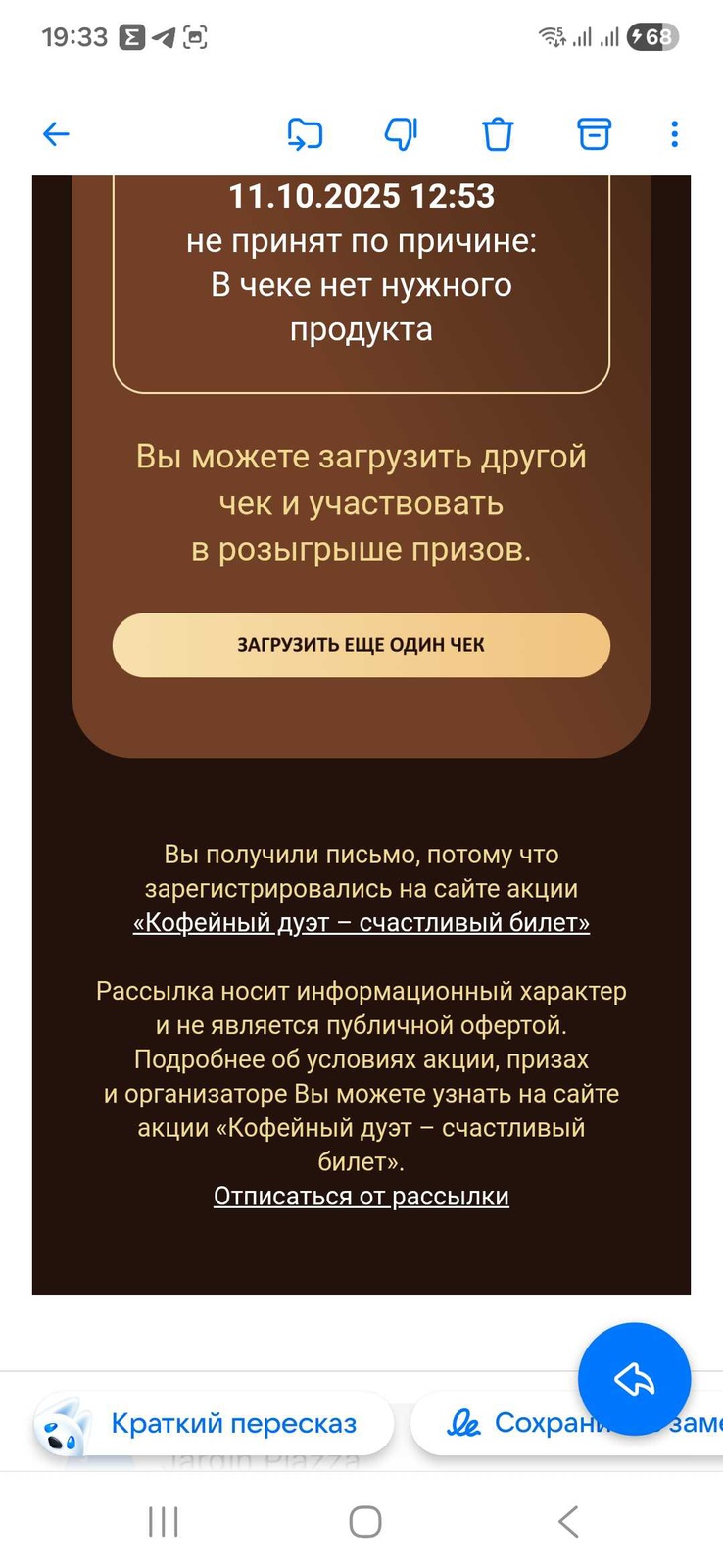 - Зарегистрируйте чек на сайте акции или в чат-боте Telegram;