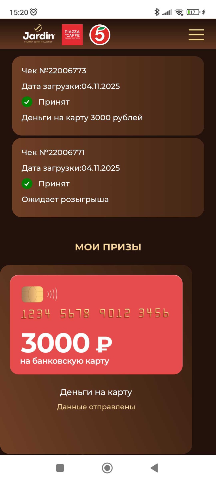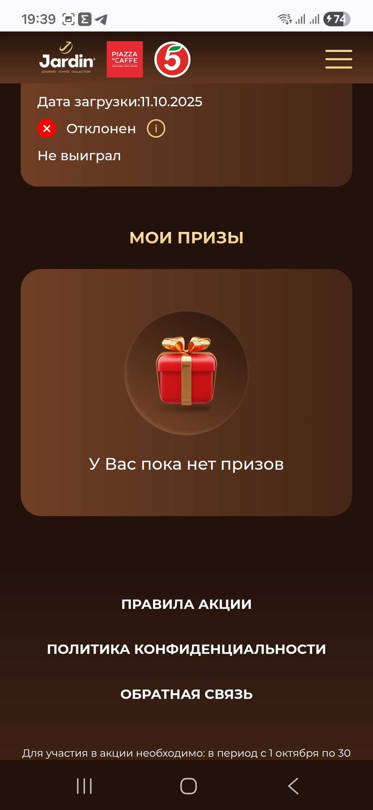 С 1 октября 2025 года покупайте кофе Jardin и/или кофе Piazza Del Caffe в магазинах «Пятерочка», регистрируйте чек и участвуйте в розыгрыше призов.