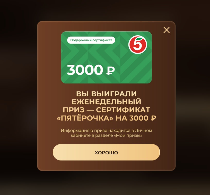 - Электронный подарочный сертификат Пятёрочка на 3 000 руб. — 90 шт.
