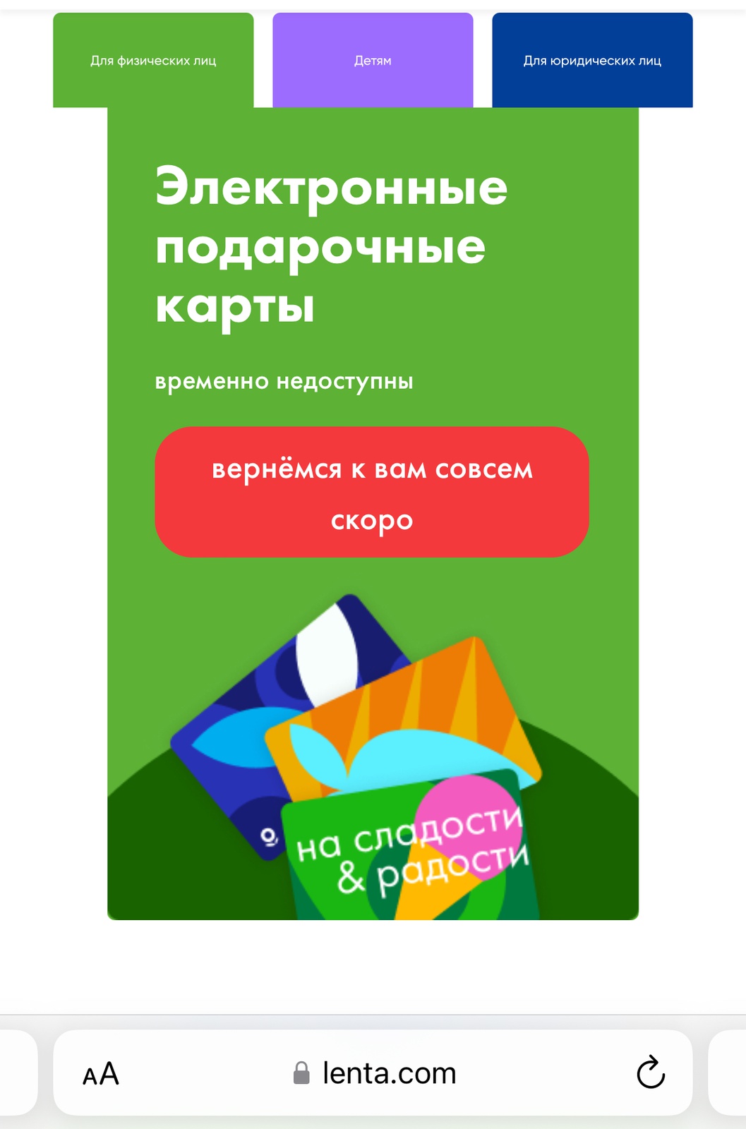- Электронный Подарочный Сертификат «Лента» 500 руб. - 155 шт.;
