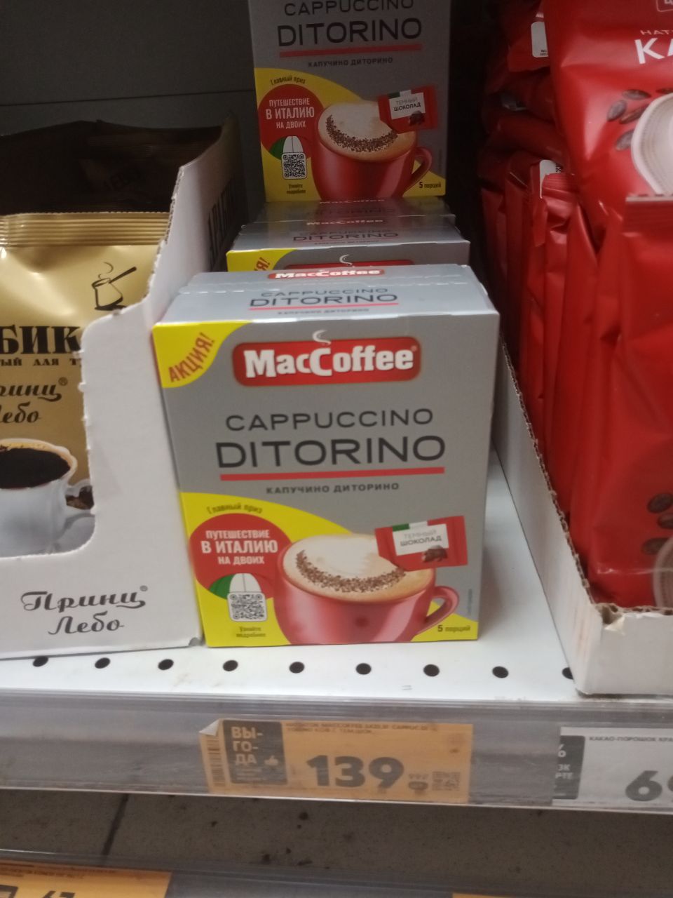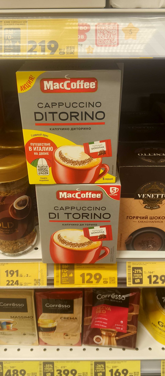 - В акции участвует пачка с 5 саше MacCoffee КАПУЧИНО DITORINO в итальянском стиле.