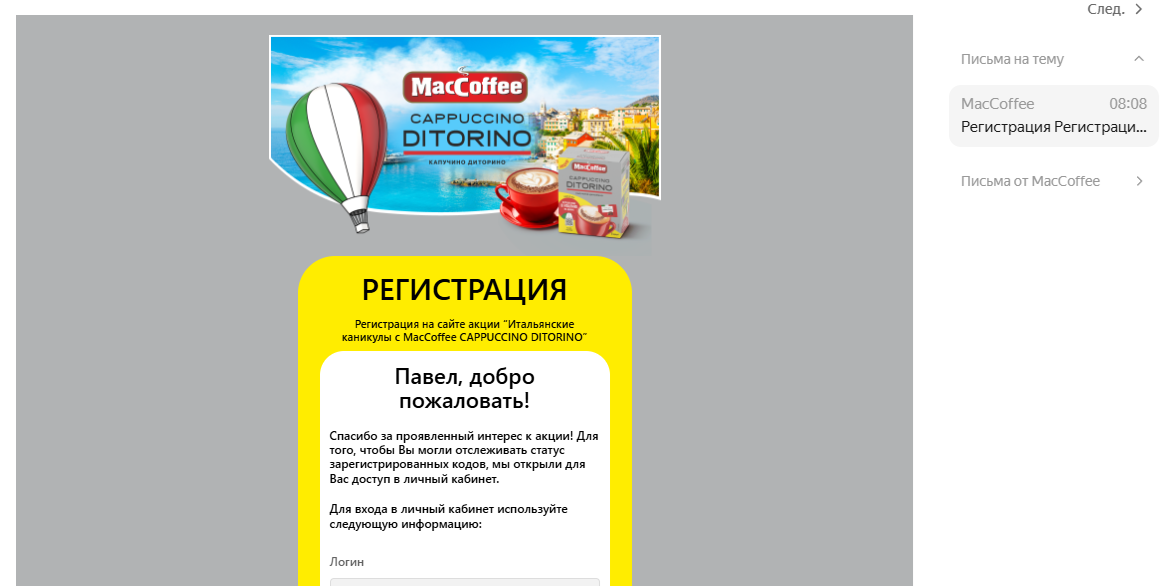 наберите в поиске адрес этой электронной почты info@maccoffee-promo.ru