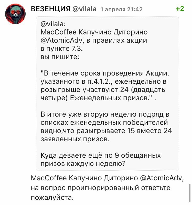 @ФЕС-продукт,пожалуй,пейте сами свой недокофе напару с о своим невнемяемым организатором в виде @AtomicAdv
