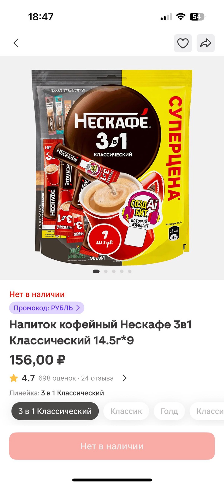 - NESCAFE Кофейный напиток 3в1 Классический 14,5г;