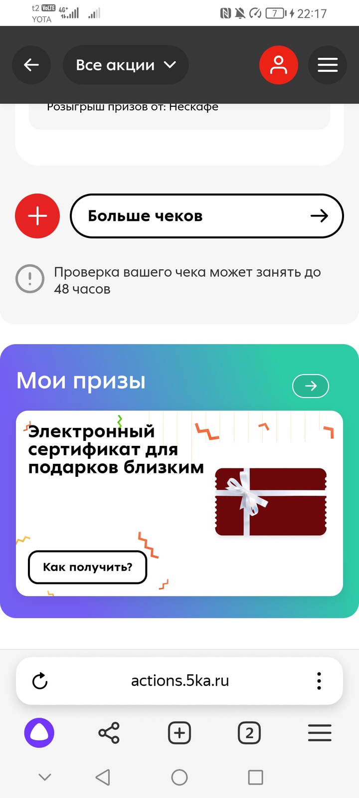 - Зарегистрируйте кассовый чек, подтверждающий покупку, на сайте акции.