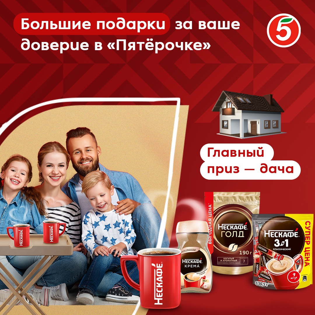 С 1 октября 2024 года участвуйте в акции от Нескафе Голд в магазинах «Пятерочка» и получайте большие подарки за ваше доверие!