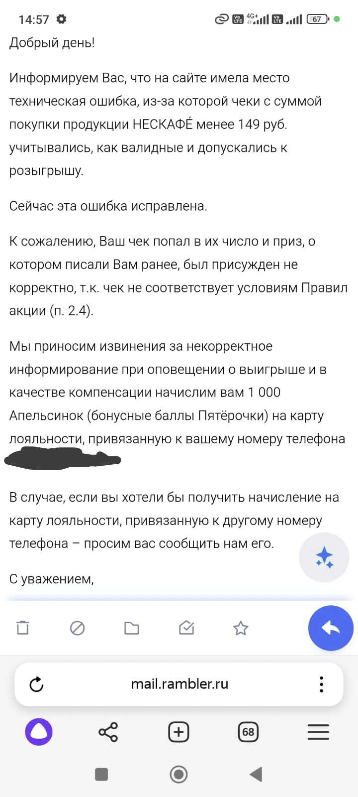и действительно - может в правилах и было написано "купи нескафе в чеке от 149 рублей" -- тут двоякое толкование и чеки ведь принимали.. или нескафе криворукие?