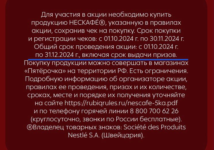 С 1 октября 2024 года участвуйте в акции от Нескафе Голд в магазинах «Пятерочка» и получайте большие подарки за ваше доверие!