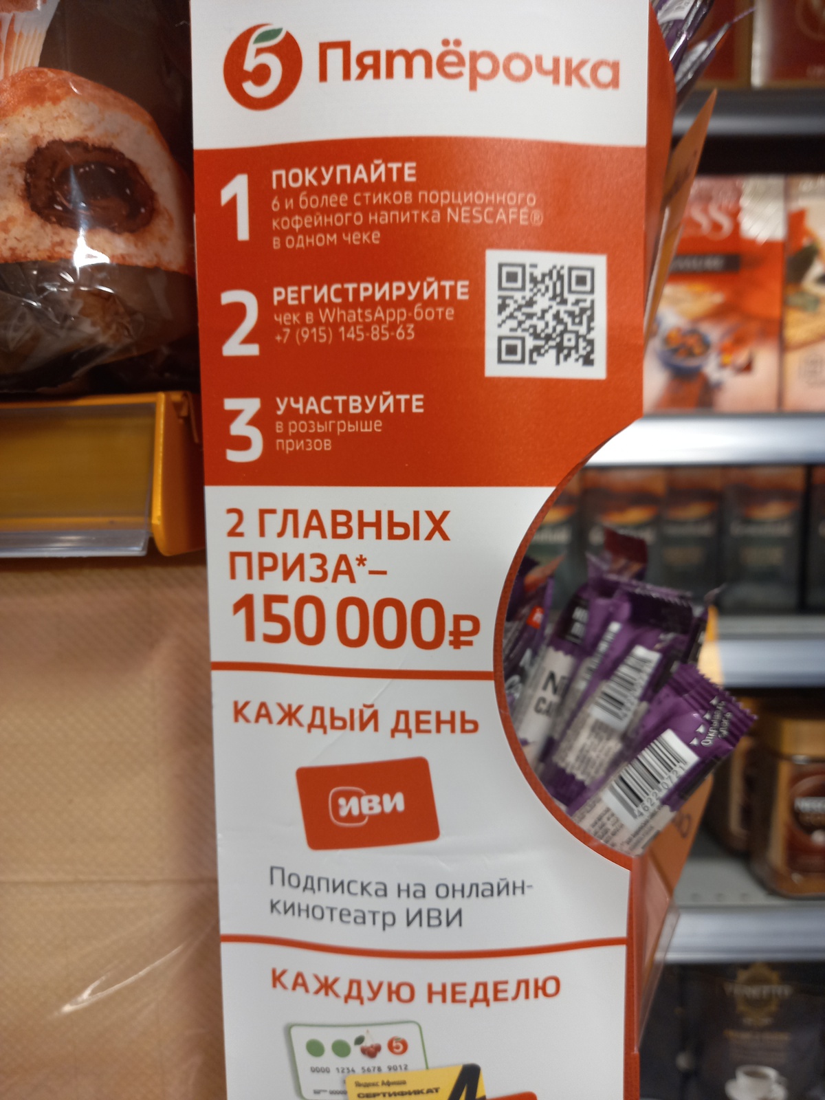 - Покупайте продукцию Nescafe®️ в магазинах «Пятерочка»;
