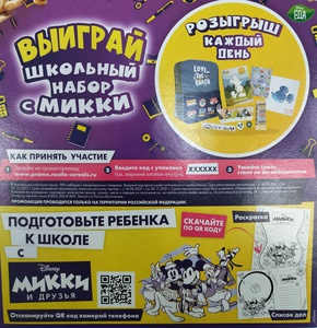 Покупай продукцию Nesquik, регистрируй код с упаковки, выиграй школьный набор с Микки! Розыгрыш призов каждый день.