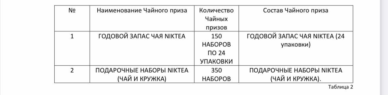 "Один Участник имеет право загрузить не более одного чека в сутки, в котором не более 15 (Пятнадцати) позиций чая Niktea"