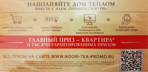 - Купите промоупаковку чая «Принцесса Нури» и найдите промокод под крышкой;
