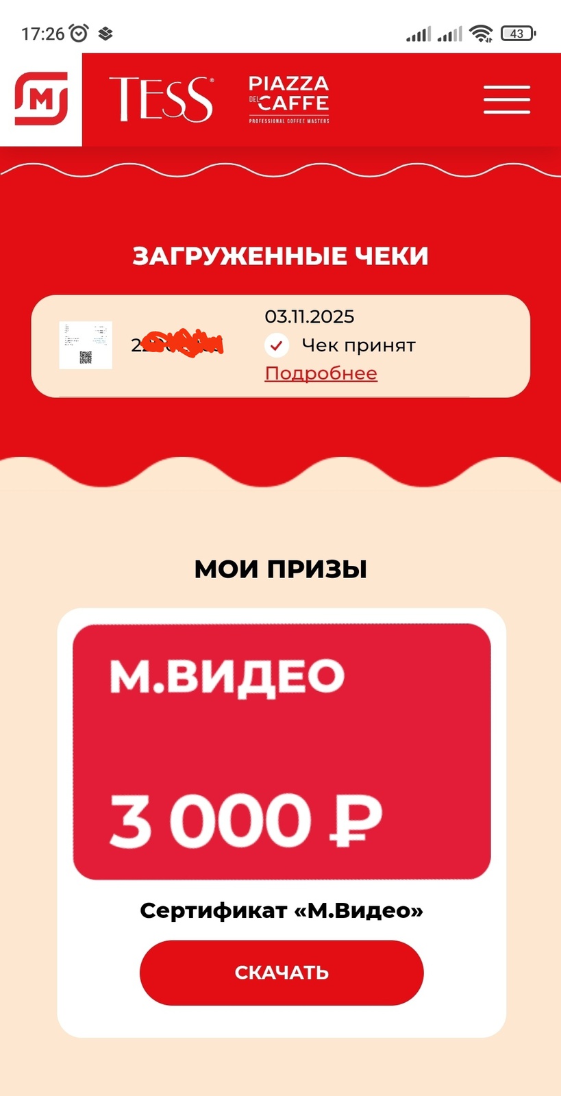 С 17 сентября 2025 года участвуйте в акции от чая Tess и кофе Piazza Del Caffe. Покупайте продукцию, участвующую в акции, в магазинах «Магнит», регистрируйте чек, получите возможность выиграть 500 000 рублей на исполнение мечты и другие призы.
