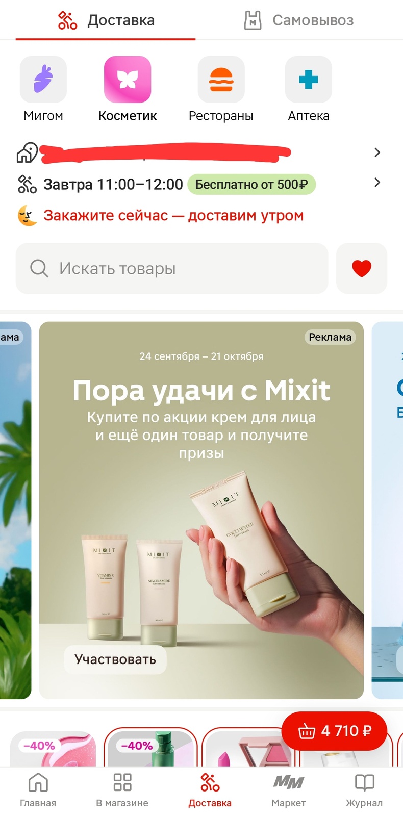 - Купите 2 средства Mixit, один из которых крем для лица, в магазинах «Магнит Косметик» с картой из приложения Магнит;