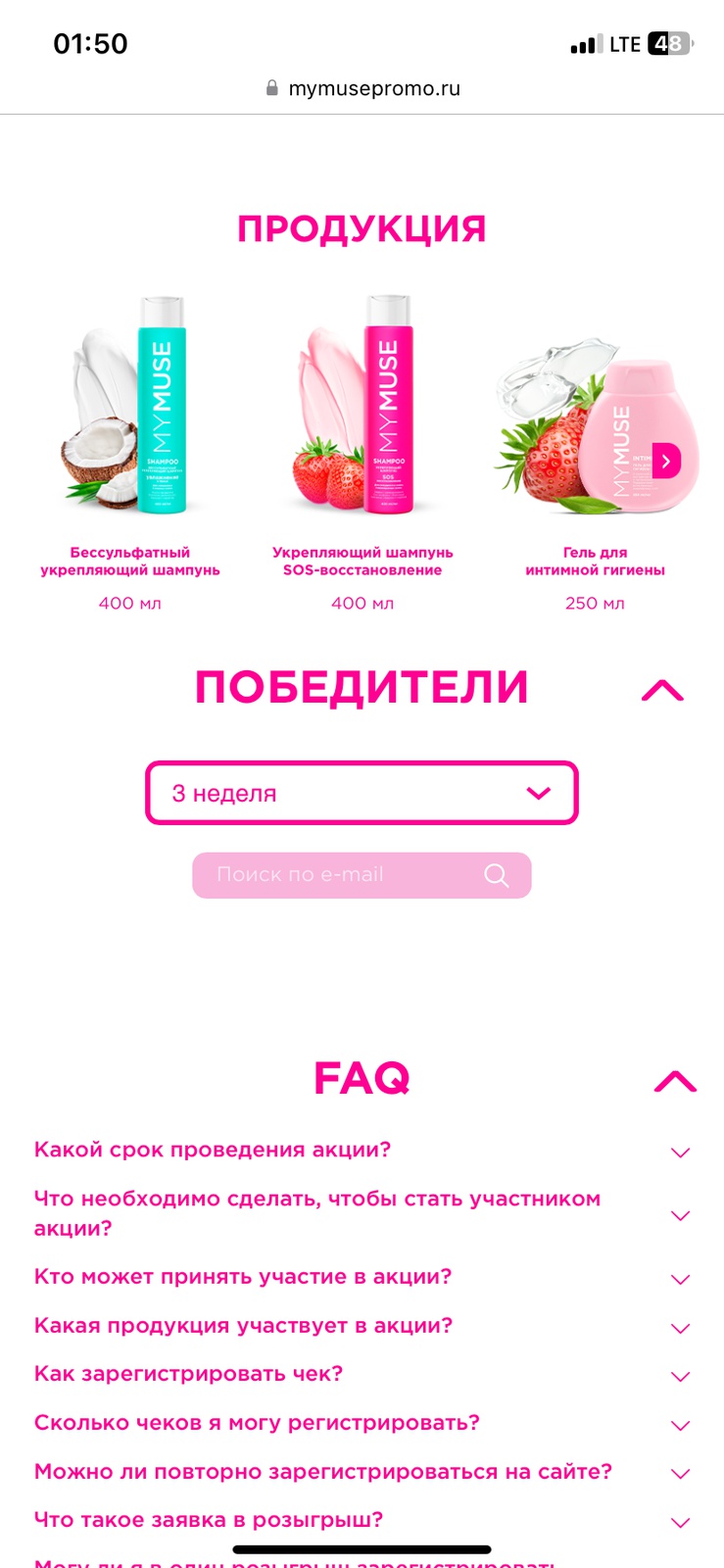 - Приобретайте продукцию MyMuse на сумму от 300 рублей (единовременно) в магазинах «Магнит Косметик», получите чек за покупку;