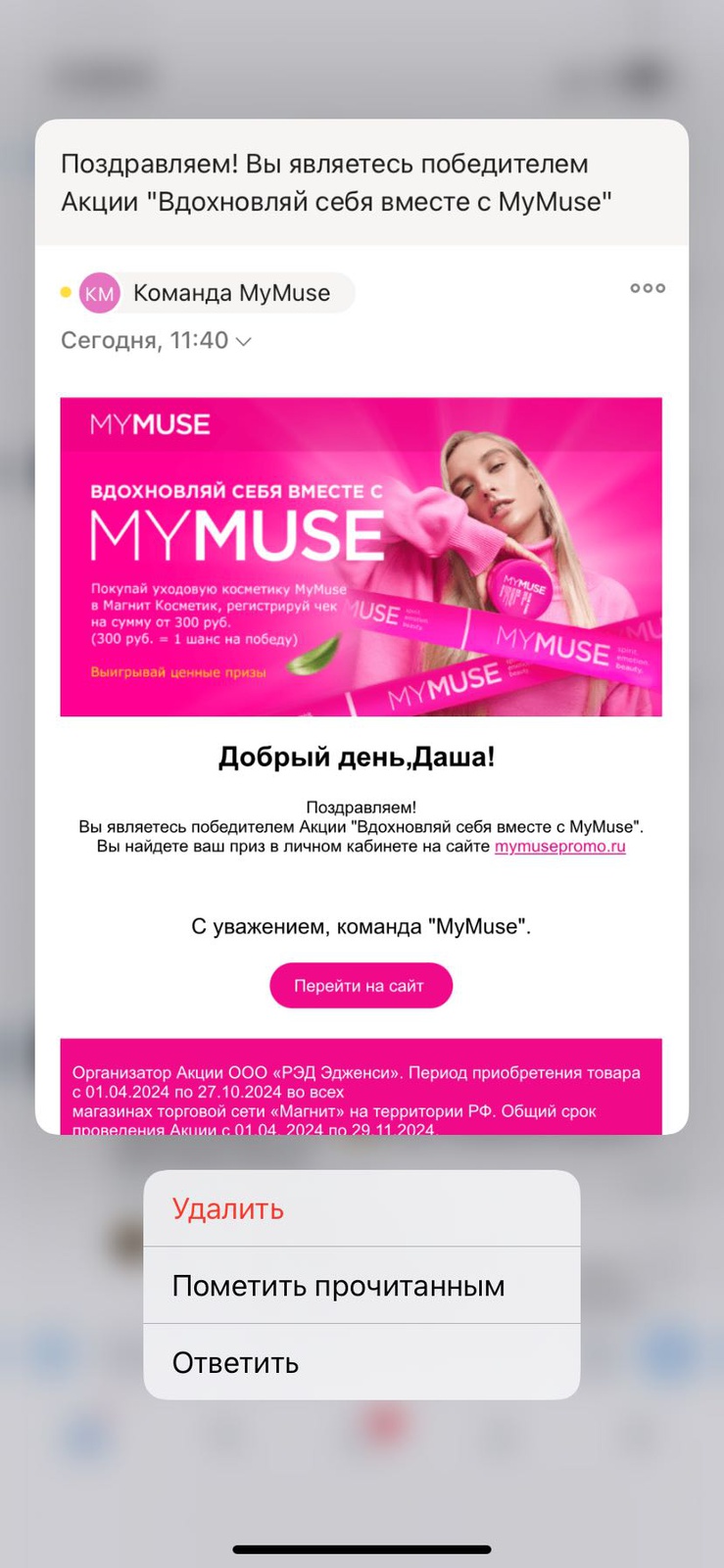 Покупай уходовую косметику MyMuse в магазинах «Магнит Косметик» и выигрывай ценные призы!