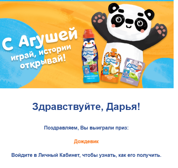 С 20 августа по 30 сентября 2020 года участвуйте в акции от Агуша в магазинах «Пятерочка» и получите возможность выиграть детский дождевик.