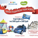 - Сертификат на приобретение товаров бренда «Huggies» номиналом 300 рублей;