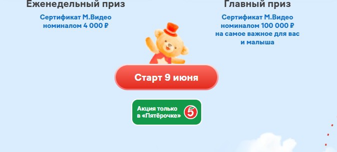 - Сертификат М.Видео номиналом 100 000 руб. на самое важное для вас и малыша.