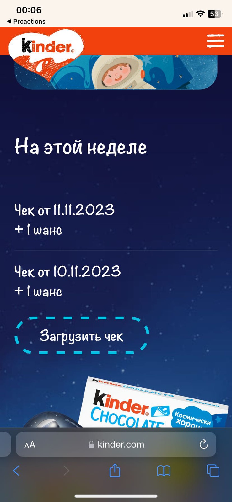 Участвуйте в акции от Kinder Сюрприз. Откройте мир космоса и выигрывайте призы!