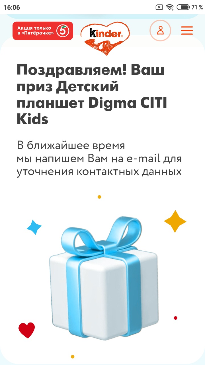 - Купите продукты Kinder в сети магазинов «Пятерочка» на сумму от 150 рублей с картой X5 Клуб;