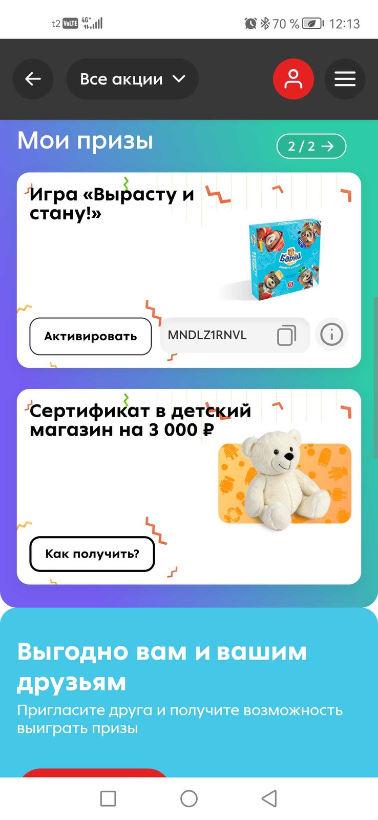 - По итогам розыгрыша две пары друзей получат электронный сертификаты в магазин "Детский мир" 10 000 руб.