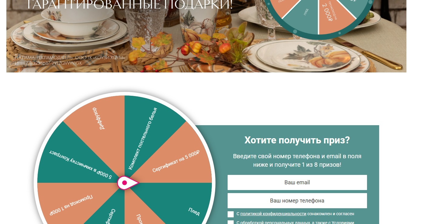 Организатор акции: ООО «ТК КОУЗИ ХОУМ»
