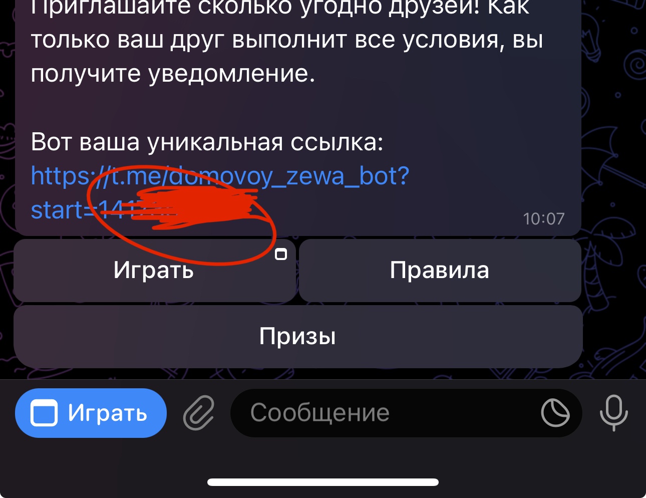 И циферки после start= это и есть ID TG! Его скинуть в поддержку.