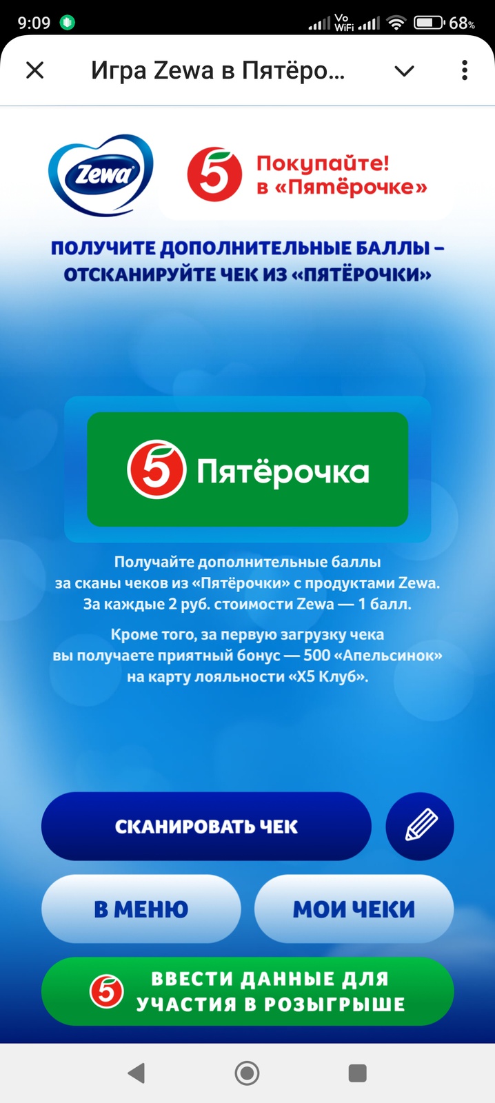 Собирайте товары Zewa и вместе с Домовёнком наводите чистоту в доме. За выполнение ежедневных заданий вы сможете заработать баллы, а за отсканированные чеки с покупками Zewa из «Пятёрочки» — участвовать в еженедельных розыгрышах ценных призов!