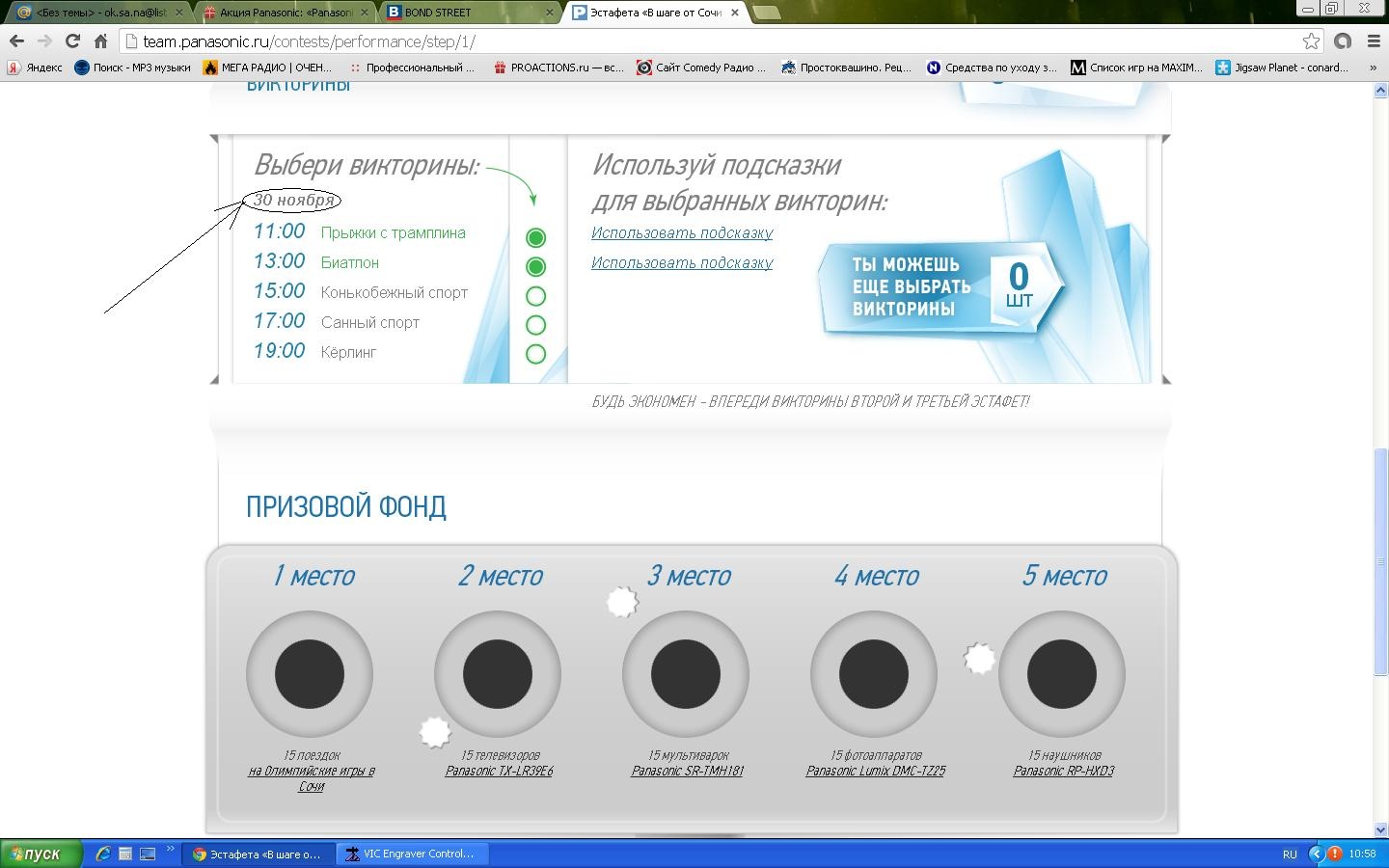 - Путевка на Олимпийские игры в Сочи 2014 (22 шт.);