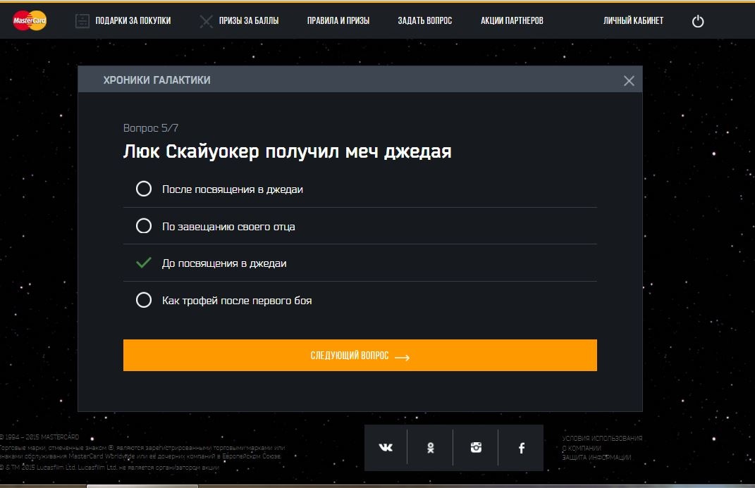 Оплачивайте покупки картой Mastercard и получите шанс выиграть поезку по местам сьёмки Звёздных войн и другие призы!
