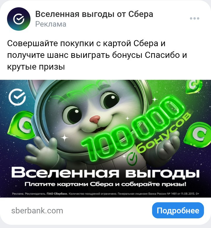 Вселенная выгоды от Сбера. Совершайте покупки с картой Сбера и получите шанс выиграть бонусы Спасибо и крутые призы.