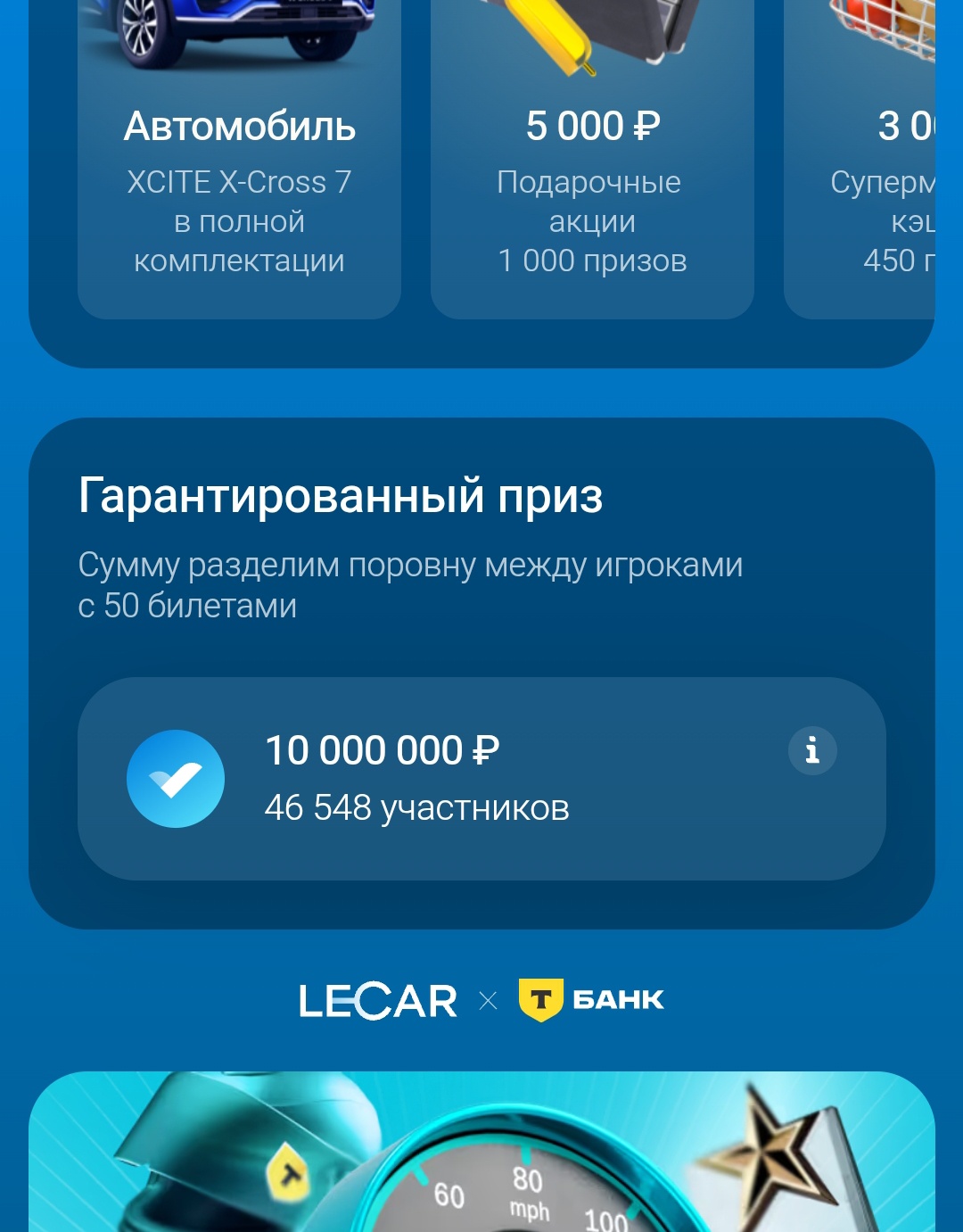 В «5 буквах» стартовал летний розыгрыш с общим призовым фондом 20 млн рублей от Т‑Банка. А главный приз - автомобиль XCITE X-Cross 7 от LECAR. Спешите в игру - каждое отгаданное слово может повысить шанс на победу.