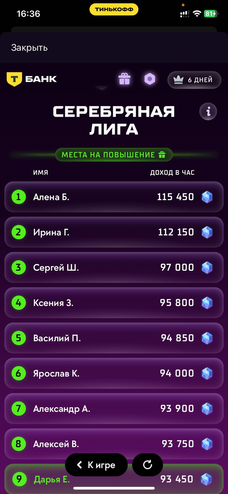 - Инвестируйте кристаллы в пассивный доход — чем он больше, тем выше ваш игровой рейтинг;