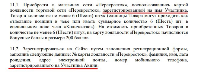 - Срок регистрации чеков и начисления баллов на карту лояльности торговой сети «Перекресток» в размере 200 баллов: в период с «17» февраля 2020 года по «31» марта 2020 г. (включительно);